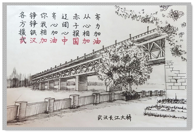 夏中慧:画中的长江大桥是武汉的著名建筑之一,平日里车水马龙、一片繁忙的景象!武汉最近生病了,希望它可以早点好起来,我们都想回家了!