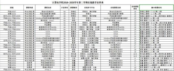 计算机学院2019-2020学年第二学期在线教学安排表截图