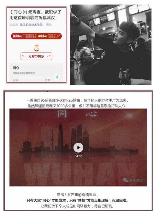 元宵夜,心系湖北、远在西北边陲博乐的“95后”王东倾注真情,为武汉这座蒙上疫情阴霾的城市献上自己作词、作曲、演唱的歌曲《同心》,呼吁在重大疫情面前,全国人民要放下个人成见和网络暴力,“只有同心共情,才能早日在暖阳下团聚。”