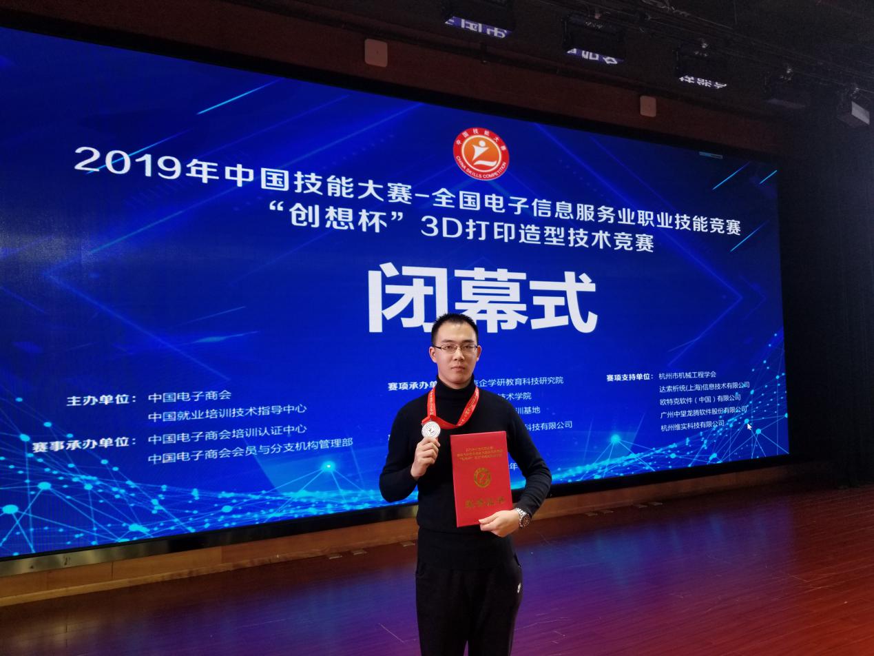 陈燚获2019中国技能大赛“创想杯”3D打印造型技术竞赛”全国二等奖
