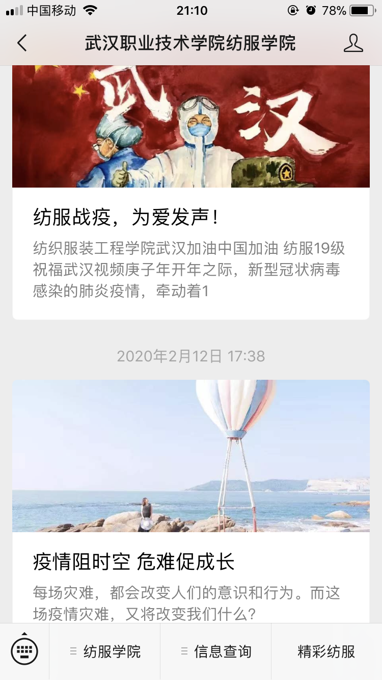 为缓解广大师生的紧张情绪和压力,帮助师生以积极平和的心态应对疫情,纺织服装工程学院通过微信公众号、微信群、QQ群各大平台向师生推送防疫心理调适指南、网络心理辅导热线、居家运动健身方法、网络在线学习资源等,不仅增强师生的“心理免疫力”,同时也提升了师生居家隔离的生活和学习质量。