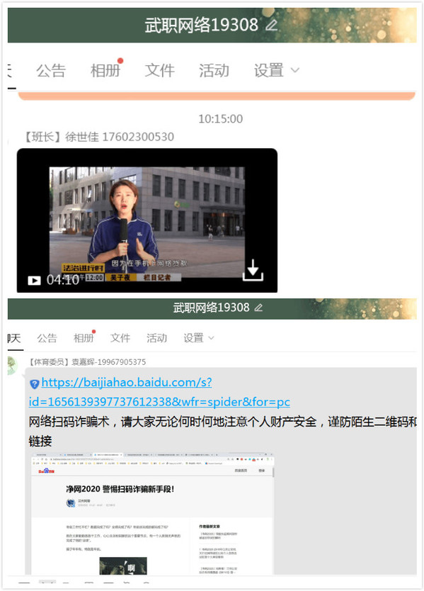 网络安全是国家安全的重要组成部分,近年来发生在高校的网络安全问题屡见不鲜。网络19308班是以“网络安全与入侵防御”为专业方向的班级,辅导员刘晓娇结合专业特色,引导学生“人人参与”,组织了一场“安全教育我来讲”主题班会。