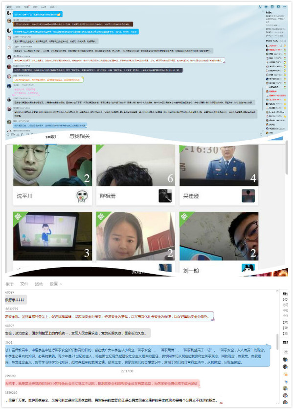 计算机技术与软件工程学院“增强国家安全意识,共同维护国家安全”主题教育活动形式多样,2018级和2019级学生积极参与,踊跃发言。学习活动结束后,各个班级通过组织线上讨论、知识竞答、为身边亲人“普法”等方式,巩固学习成果,分享学习心得。