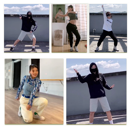 在全民抗疫的非常时期,分散在全国各地的武职学子收到“云比赛”通知,积极响应,踊跃报名。热爱舞蹈的学子们纷纷在自家卧室、客厅、阳台、走廊、天台,因陋就简,伴着激昂的旋律蹁跹起舞,请家人录制视频。“聚是一团火,散是满天星”,一个简单的手势、一个停顿的节拍、一份自信的微笑,展现了武职学子青春、阳光、健康的精神风貌,传递出满满的运动正能量。