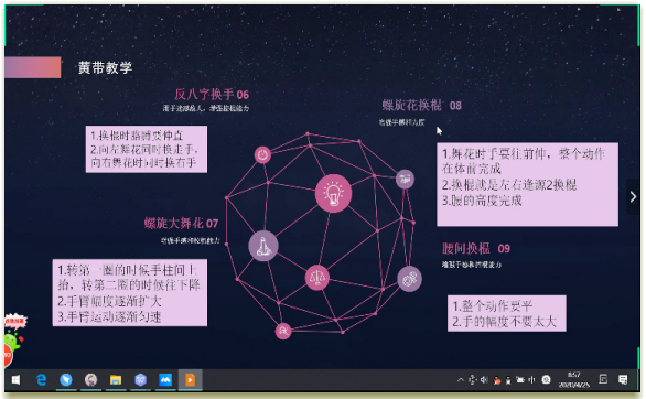 停课不停练,运动展风采。4月25日上午,曾登上央视舞台、在国际国内大赛上获得众多金牌和荣誉的雷灵棍社,积极响应“停课不停学”的号召,组织开展双节棍文化普及和黄带棍法教学活动。社员们齐聚腾讯会议平台,总结比赛经验,分享比赛心得,学习黄带棍法技巧,提升本领,为己赋能。