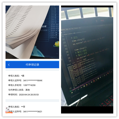 这是梁明明第二次收到社区志愿服务通知。自今年1月底疫情爆发以来,梁明明就主动联系社区,积极投身社区一线防疫志愿服务。随着疫情逐渐好转,梁明明在社区统一安排下逐渐退出一线。日前,随着复产复工高峰来临,社区近千名中老年人需要外出但不会申请健康码,急需帮助。梁明明就在此时接到通知,并积极承担任务。刚开始,梁明明花费2小时才录入30个人员信息,看着社区提供的1000份名单,梁明明转化思路,主动上网学习adb编程软件、编写脚本,导入一人信息只需30秒。就这样,梁明明耗时7个小时将社区1000份名单全部及时录入,为社区复产复工工作减负,同时为社区外出中老年人提供了及时帮助。