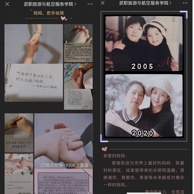 你有多久没有跟母亲牵过手,合过影,写过信?母亲节这天,骄阳学子牵起母亲的双手,感激母亲的辛勤付出;翻出儿时旧照翻拍,重拾与母亲的温馨记忆;写下最想诉说的话语,表达对母亲的深深祝福……他们以青春之名,通过各种形式,对养育自己长大的母亲深情告白。