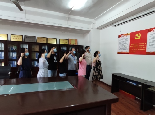 7月1日中午一点,凌波楼内,参与毕业生返校工作的教师党员在党员活动室重温入党誓词。商学院党委书记杨俊为在场的党员同志们讲了一节“不忘初心 红船再出发”微党课,勉励全体党员学党史、铭党恩、跟党走。杨俊特别表彰《学习强国》积分达22159分的党员教师王丽婷,希望全体党员用好平台,学好党史,讲好中国故事,讲活课程思政。