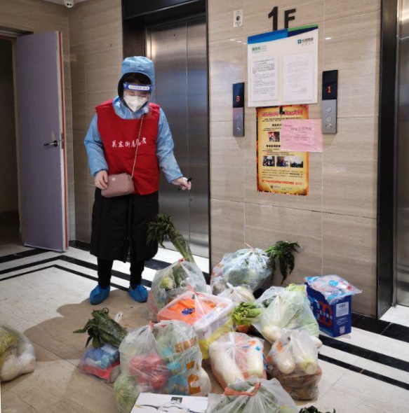 苏琴在抗疫期间为社区居民代购、分发物资