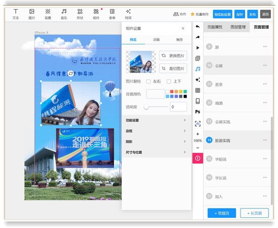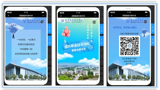 接下来的一周时间里,会展学子们在老师指导下,大胆构思、精心设计,反复修改每一个细节和动效。6月8日,各小组打造出专属会展专业的定制H5动画,这种互动式推广能够起到良好的宣传效果,还能实现个人信息搜集、在线咨询问题等功能,更好地助力招生宣传工作。