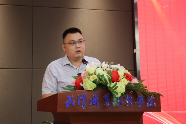 生物工程学院副院长、副教授鞠守勇博士,作为教师代表发言。疫情期间,他带领团队,成功完成了新冠病毒N蛋白的表达、纯化工作,为新冠病毒快速检测方法的研究贡献了一份力量。他勉励毕业生要学会爱、善于学、敢于拼。