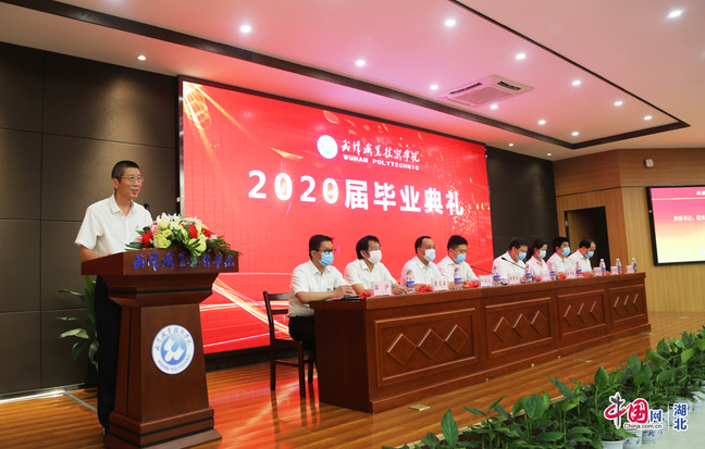 中国网武汉7月1日讯 武汉职业技术学院6月30日举行2020届毕业典礼,该校党委书记、校长李洪渠勉励毕业生,要坚强前进、坚定目标、坚守责任,“愿武职的后浪们奔赴万里山河,共同掀起民族复兴的巨浪”。