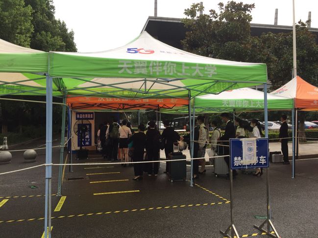 12日清晨6:16分,招生与就业指导处副处长彭朝晖在工作群里发了一张照片,一群学生戴着口罩,正在排队有序进入测温通道,这是来武职考点参加导游专业考试的第一批学生。他们头顶的帐篷被撑得四平八稳,默默为学生们遮风挡雨、保驾护航。