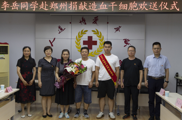 7月7日,为了表示对李岳的支持和赞许,河南省漯河市红十字会专门为李岳赴郑州捐献造血干细胞举行了欢送仪式。7月10日-14日,为了促进造血干细胞大量生长并释放到外周血中,李岳在河南省人民医院接受多次捐赠前的注射、抽血检查,提取了造血干细胞等,并于7月14日上午完成捐献手术。
