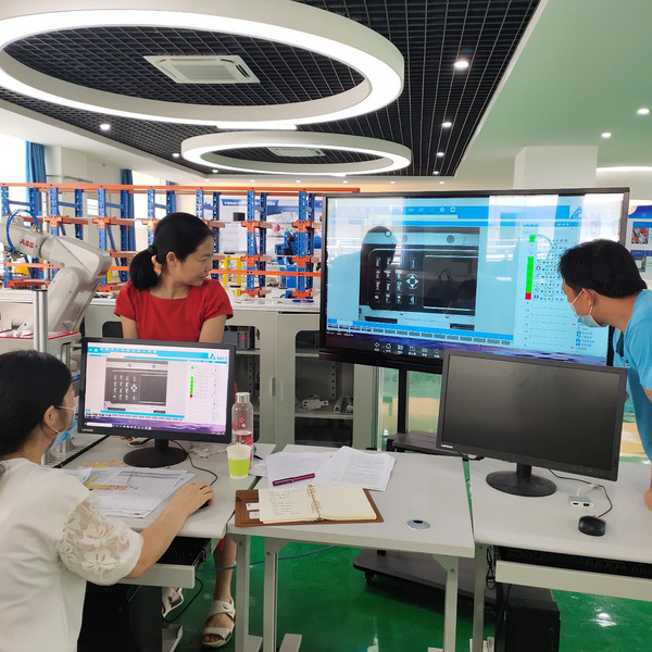 在培训过程中,老师们边学习工作站实践知识,边拍摄视频积累课程资源,为新课的教学和资源建设积累素材。朱晓玲老师表示,由于系统集成课程有一定难度和灵活性,预打算和企业共同开发活页式教材,这也是工业机器人国家级创新团队任务的重要目标,通过活页式教材编写,提高工业机器人团队教师课程设计的能力。