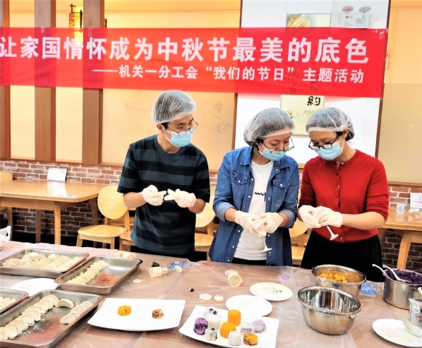 9月29日下午6时许,学苑餐厅内华灯初上,温馨喜庆氛围中,机关一分工会会员们兴趣盎然地一边制作月饼、包饺子,一边分享着传统食品带来的愉悦。