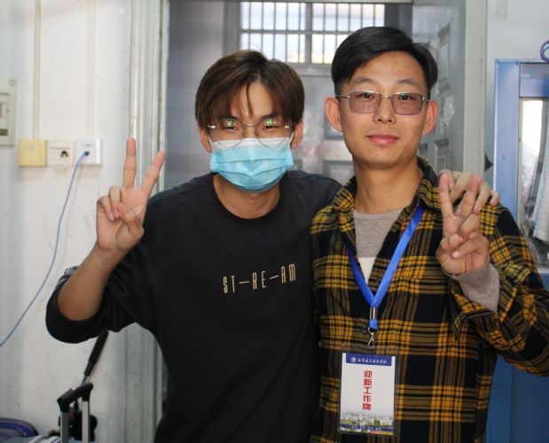 新生辅导员孔婕老师帮助新生搬运行李,办理入住手续