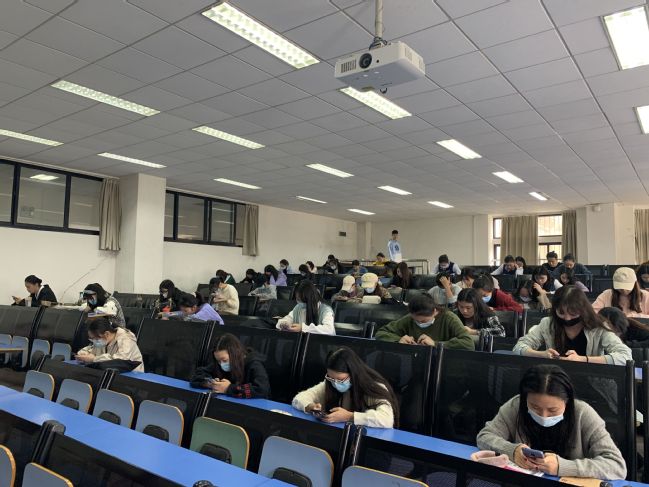 10月30日,第25、27两个批次共60名在校骄阳学子齐聚逸云楼113教室,参加自主学习考试。除了“四史”相关的基础知识外,还设置了“学习四史的意义”等开放性题目。骄阳学子认真作答,交出满意答卷。此外,在外实习的50名学生参加统一组织的线上考试,做到全员参与。