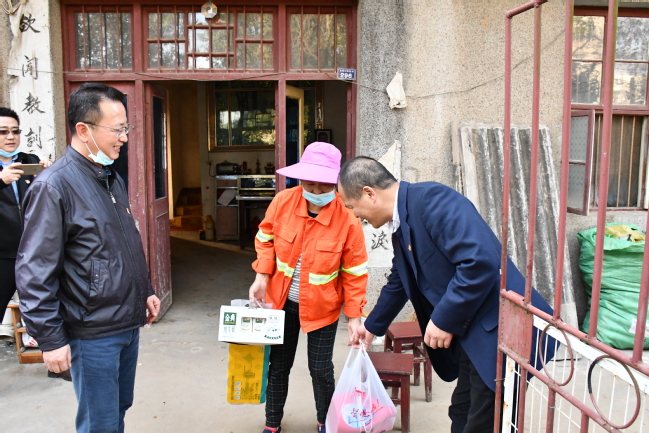 11月10日下午,邱文成带领全体教师党员走访慰问包保对象刘素珍家,给她送上慰问品,传递关怀和温暖。