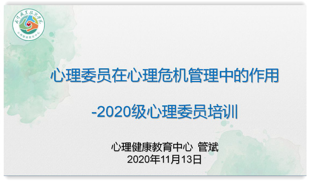 本次系列培训旨在帮助2020级新生心理委员拓展心理基础知识和技能储备,明确工作职责,提升胜任力,协助开展心理危机预防与干预工作。系列培训的成功举办,对于进一步完善学校四级心理健康网络建设,提高大学生群体助人意识和助人技能,开展大学生朋辈心理辅导工作具有积极意义。