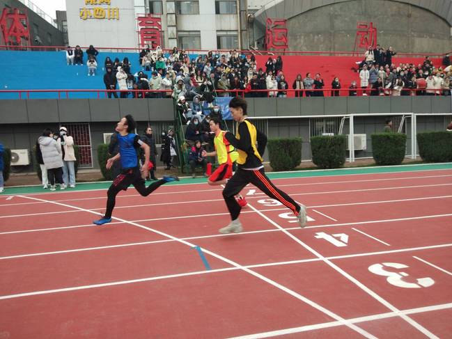 运动会上在风雨中奔跑的旅游学子