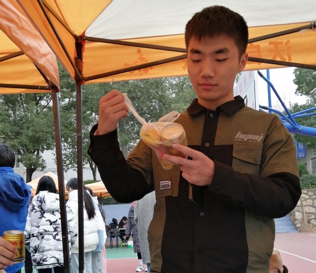 两个小面包、一瓶红牛、一块士力架,这是旅游与航空服务学院为队员们精心准备的爱心礼包。
