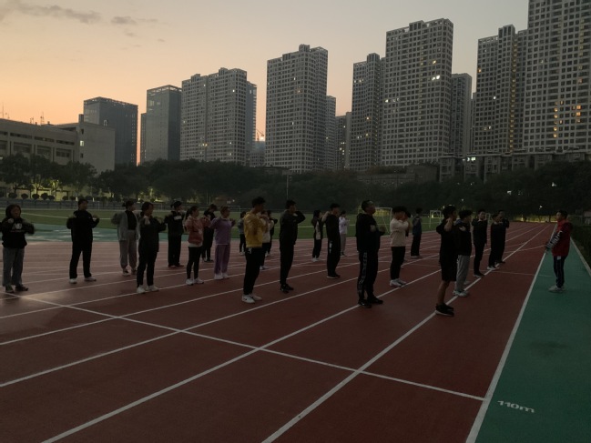 旅游学子参加晨训