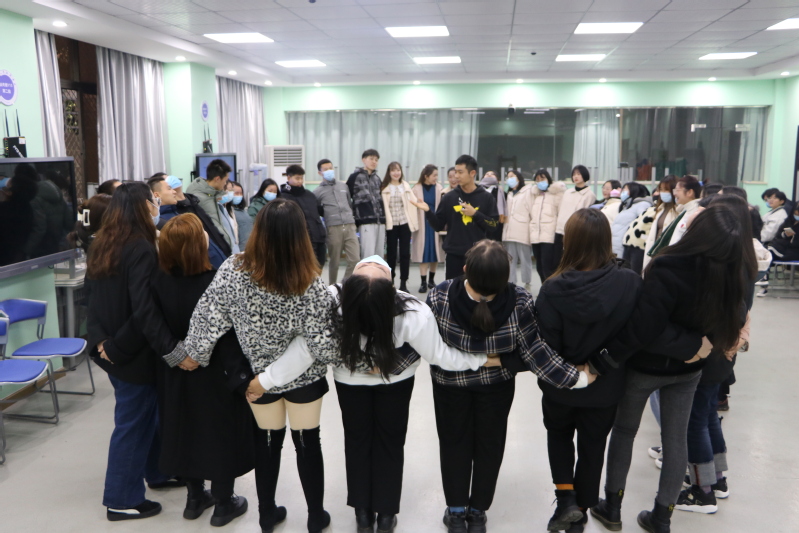 “无家可归”环节,师生们敞开心扉,让参与活动的学生领会归属与接纳的重要性,忘掉“孤单、失落”的负面情绪。活动中,全体同学需要手拉手围成一圈,体会“在一起”的感觉,当听到领导者喊“变,4个人一组”,成员须迅速组成新的四人组。没有找到“家”而游离在集体之外的人大多会觉得“孤独、被抛弃、没依靠、担心……”,而集体内的成员则表示自己体会到“温暖、有力量、安全感、踏实……”。在多次变换中,让学生有机会积极融入集体,体验到“家”的感觉和集体的支持,更加愿意与大家在一起。
