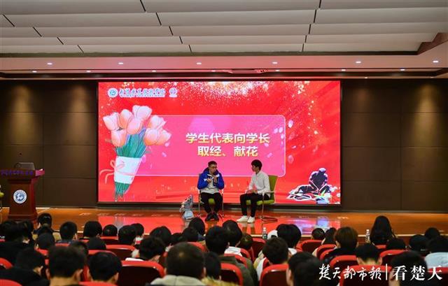 “学长,了解到你的事迹后,我打心底里佩服你。这是我特意准备的鲜花,送给你。”3D打印技术中心2019级科研助理、2020年湖北省赛一等奖获得者王龙怀揣着激动的心情,向陈燚献上鲜花并向其取经,表示将以优秀校友为榜样,笃学奋进,逐梦成长。