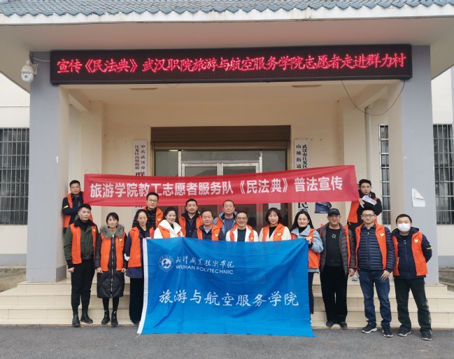 武职网讯(通讯员 马瑞阳)为普及民法典知识,弘扬民法典精神,提高群众对《民法典》的知晓率,12月11日,旅游与航空服务学院教工志愿者服务队10余名教师前往武汉市江夏区山坡街道群力村开展《民法典》普法宣传活动,助力民法典精神“飞入寻常百姓家”。