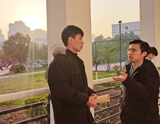 学生记者向吴宝洪请教