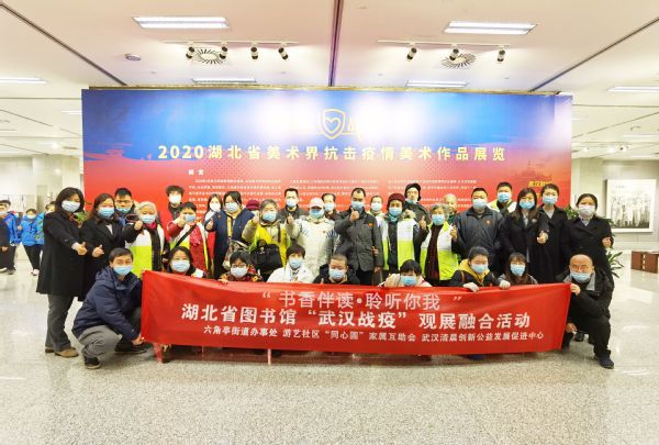 武职网讯(通讯员 陈晓)弘扬抗疫精神,珍惜美好生活。12月25日,湖北省图书馆开展“书香伴读·聆听你我”第40场线下活动。湖北省图书馆、武汉清晨公益和武汉职业技术学院红色经典读书会共同邀请来自武汉市各个区街道阳光驿站和阳光家园的60余位残障学员和其家属集体参观“2020同心战疫湖北省美术界抗击疫情美术作品展览”。