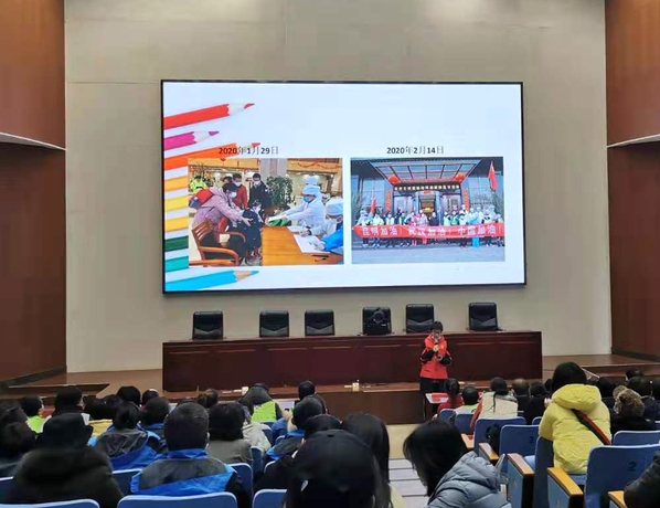 武汉职业技术学院“红色经典读书会”两名成员也作了现场分享。编导18302班学生隆欢分享了他在疫情期间做志愿者的亲身经历。艺术设计20310班学生韩梓凇分享了自己和家人被隔离在云南的那段终身难忘的经历,“当时,我的父亲突发疾病,是医护人员在高危区为我父亲提供了细心的救治服务,让我们真切地感受到了中国共产党是人民至上的党。”情真意切的分享,赢得了大家的热烈掌声。
