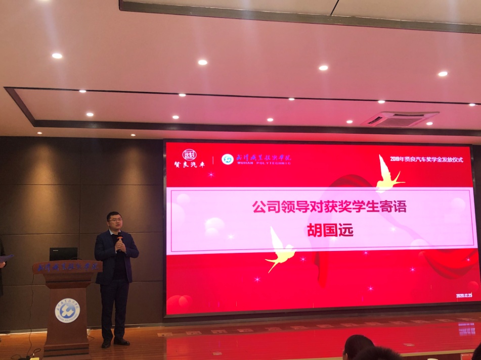 湖北贤良汽车投资有限公司副董事长胡国远寄语获奖学生
