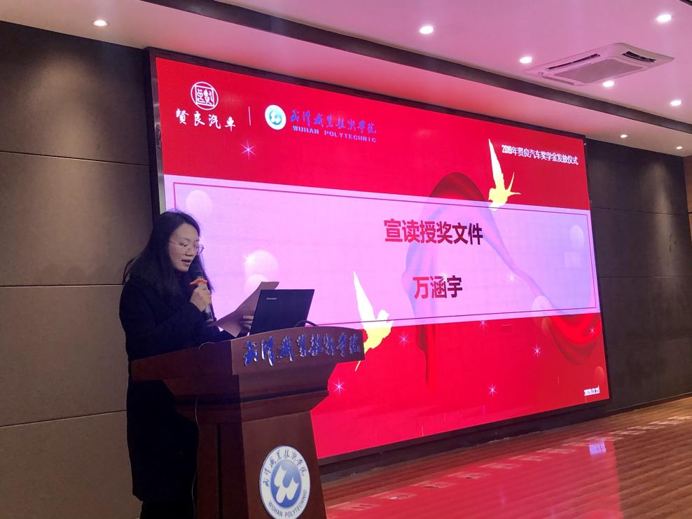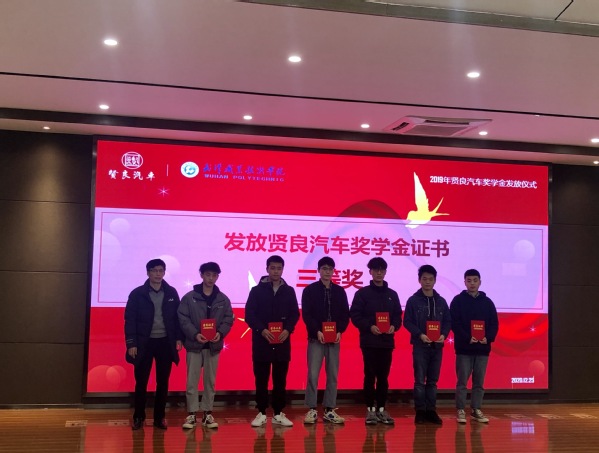 武职网讯(通讯员 华崇志)12月25日,机电工程学院举行 2018-2019学年度“湖北贤良汽车奖学金”发放仪式,表彰奖励该年度学习成绩优异、综合表现突出的51名机电学子。湖北贤良汽车投资有限公司(以下简称贤良集团)副董事长胡国远,武汉华星天佑汽车销售服务有限公司总经理陈玉梅,机电工程学院党委副书记万涵宇,汽车与营销教研室主任熊其兴,汽营专业2018、2019级60余名学生出席仪式。