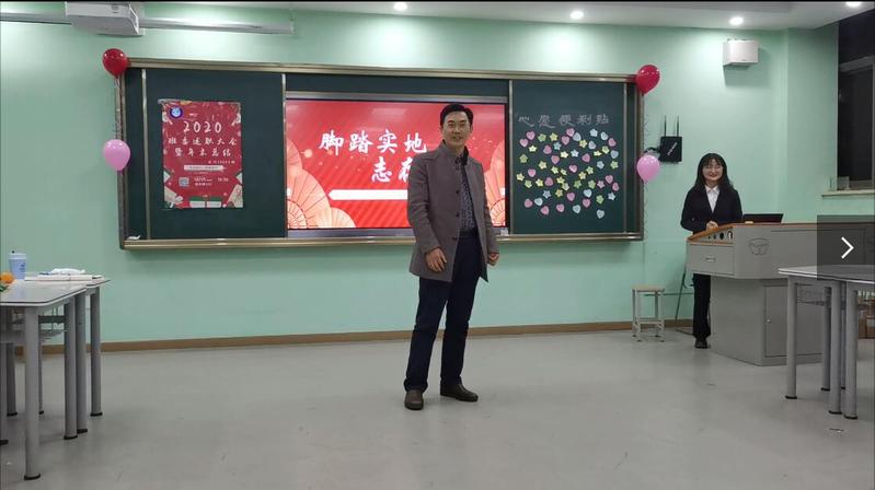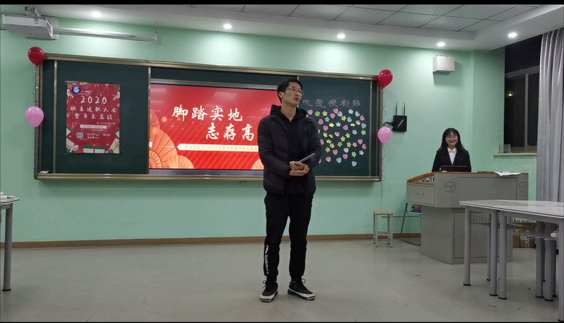 会计19305班辅导员陈家新走到台前,为每一个学生送上新年祝福,叮嘱大家放假后安全离校,做好个人防护,积极参加疫情防控志愿服务,过一个幸福的中国年。