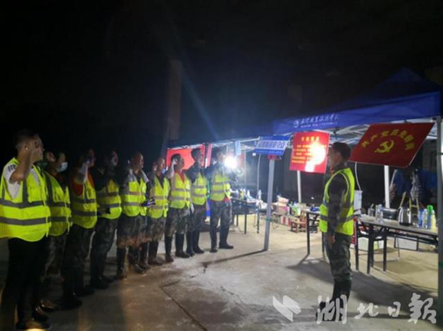 湖北日报讯(通讯员 王峰)“我是一名光荣的防汛队员,我肩负全市人民生命重托,日夜守护长江大堤……”7月23日晚,在武汉市武金堤洪山责任段的大堤上,各哨所传来阵阵宣誓声。这是轮换上堤巡险的防汛队员面对《守堤誓言》进行宣誓。