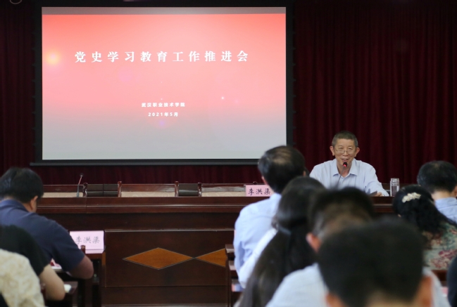 5月8日下午,武汉职业技术学院党史学习教育工作推进会在逸兴楼四楼会议室召开,机电工程学院、艺术设计学院代表在会上作交流发言,党委书记、校长李洪渠对继续深入推进党史学习教育提出要求。校党委副书记胡象斌,纪委书记何让波,副校长李望云、刁元斌、郭沙,各二级学院党、政主要负责人及各职能部门主要负责人参加推进会。