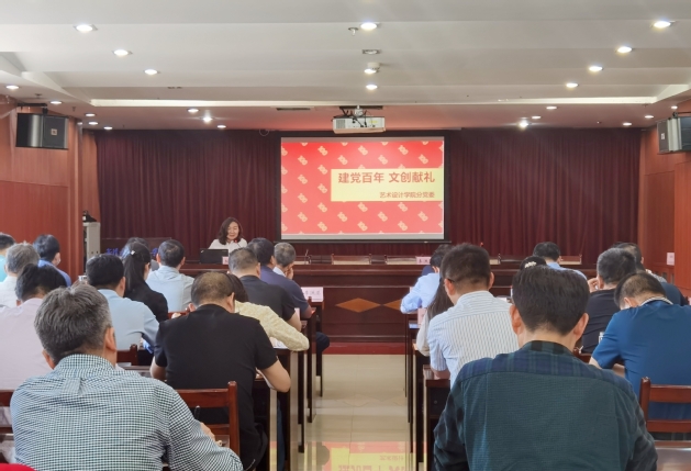 艺术设计学院分党委书记、院长谢丽以《建党百年文创献礼》为题,分享了艺术设计学院开展党史学习教育的典型做法。谢丽讲到,本次以文创产品为主要内容的活动,在确定“建党百年 文创献礼”主基调后,按照红色元素精简提炼、红色文创创意设计、文创产品制作生产、创意集市双创平台的流程渐次推进。谢丽现场展示了艺术设计学院师生以红色文化为元素,设计制作的笔、本子、杯子、背包、笔袋、纸巾盒、红包、胸章、手机壳、口罩、文化衫、书签等多种产品设计图片,提出后期将参考学校师生的投票意见,选择性地进行产品制作生产。