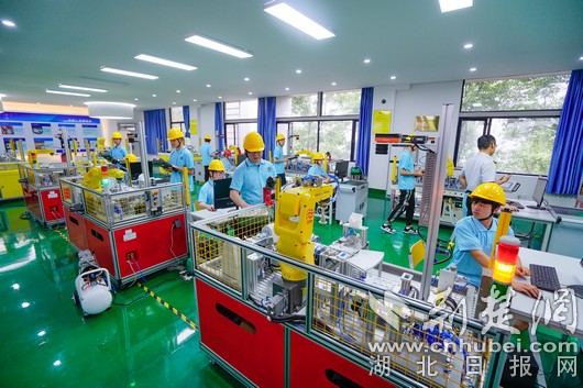 工业机器人实训中心。记者刘建维摄(图片来自荆楚网)