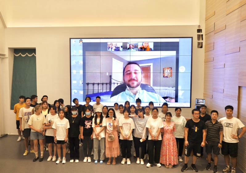武职网讯(通讯员 陈丁瑜 罗慧中 摄影 陈梦娇)6月24日晚,由学校对外合作与交流处举办的“国际视野工程”系列活动之“国际文化交流沙龙”第14期在学校众创空间路演厅如期举行。两位美籍教师Zee和Allie远在美国,通过云端和40名英语学习爱好者一起畅谈改变人生的重要节点和瞬间(big events or key moments that change or influence your life)。武职学子踊跃和外教进行线上交流,会场气氛热烈。