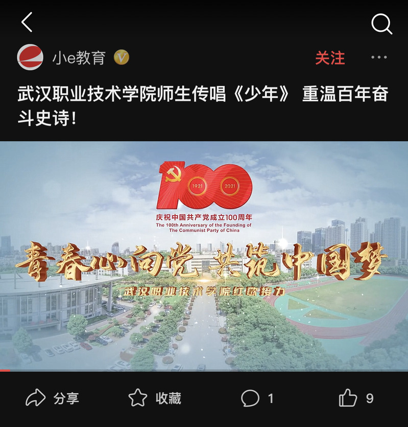 【中国教育在线】武汉职业技术学院师生传唱《少年》 重温百年奋斗史诗
