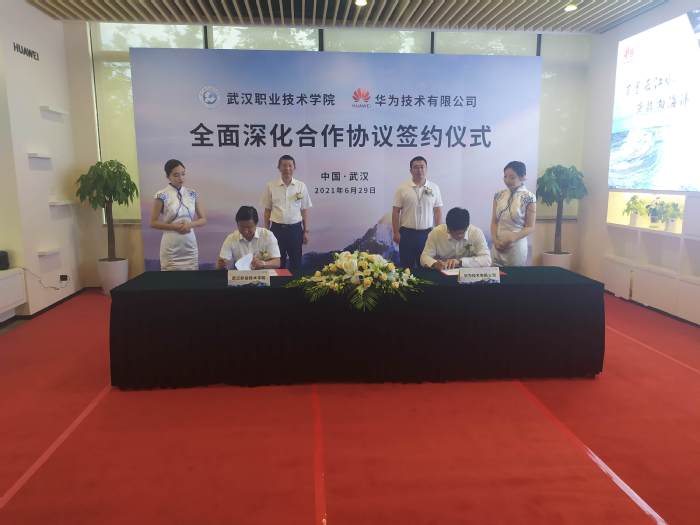 洽谈会后,武汉职业技术学院副校长郭沙、华为湖北政企业务部武汉市总经理刘旭帆代表校企双方签署全面深化合作协议。