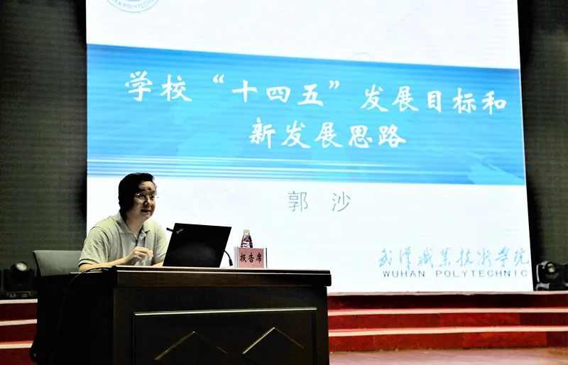 武汉职业技术学院副校长郭沙以《学校“十四五”办学目标与新发展问题》为题作报告,介绍了学校“十四五”时期的办学目标,并结合学校实际分析了学校发展面临的相关问题及解决之道。
