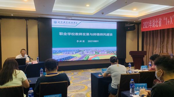 武汉职业技术学涛党委书记、校长李洪渠作《职业学校教师发展与师德师风建设》主题报告