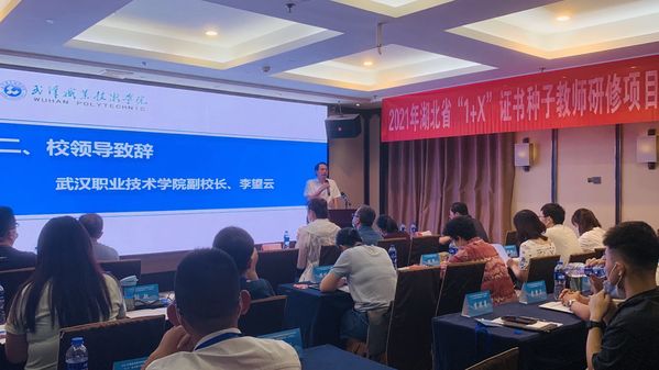 2021年湖北省职业院校教师素质提高计划“1+X”证书种子教师研修项目(计算机类)于8月1日上午正式开班,武汉职业技术学院副校长李望云出席开班仪式并代表学校致欢迎辞,长江职业学院何莉代表本期学员发言。
