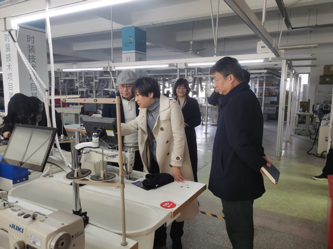 座谈会后,来访客人在郭沙等人陪同下,参观了纺织与服装工程学院教学、实训环境,对学校的办学实力、纺织服装类专业的鲜明特色,以及在教育教学改革、人才培养等方面取得的成绩给予了高度评价。