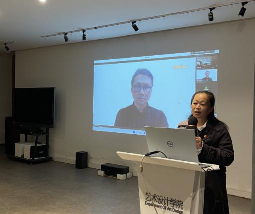 武汉海德剑桥教育咨询有限公司总经理郑荔丹、副总经理于佳嘉等嘉宾与艺术设计学院师生汇聚德艺楼展厅,参加此次线上国际交流活动。新加坡高等教育学院副校长Donld Pang,学校对外合作交流处罗慧中等通过视频连线参与交流。交流活动由艺术设计学院分党委副书记宋霞主持。