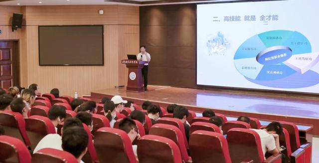 宣讲会上,嫦娥抗衰集团董事长林国华以《为命运耕一条好赛道》为题,结合自身的创业史和嫦娥集团的发展史,鼓励学生们以职业为荣,磨练技能。