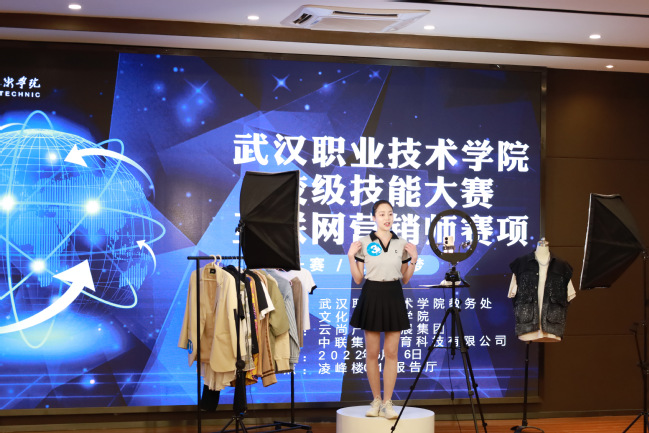互联网营销师技能大赛决赛环节,采取线上线下同步直播形式举行。线下近100人观摩,线上有3700余人观看了赛事。比赛真实还原直播场景,对指定产品进行直播展示。本次比赛主要以服饰类直播间作为考核内容,选品由上衣、下装、配饰组成,参赛选手要在5分钟不间断直播过程中推介选品。比赛过程中,18位选手现场自由组织直播话术对两个产品进行介绍。选手们表达流畅,话术运用灵活,产品描述专业,并与线上观众积极互动,活跃直播间氛围。中联集团教育科技有限公司湖北区域总经理鲁烽和云尚产业集团产业推广总监李沛对选手表现进行了深入细致的点评。